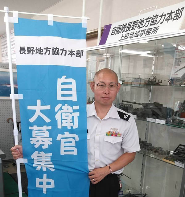 自衛隊長野地方協力本部 上田地域事務所当事務所は上田佐久地域(東信地区)における広報および自衛官募集活動の拠点として、所長と5名の広報官が活動しています。 ![]() 中江 宏仁 上田地域事務所長(陸上自衛隊 1等陸尉) 上田地域事務所前にて *自衛隊長野地方協力本部上田地域事務所はJR上田駅温泉口から出て僅かの距離です。 進路希望に自衛隊を考えている学生の方はもちろん、募集対象年齢(詳しくはお問い合わせください) 適齢の方で自衛官を目指す方は地域事務所にご相談ください。 ![]() 江口 広美 副所長(海上自衛隊 海曹長) 担当地域ー佐久市(旧望月町、浅科村)、上田市(旧丸子)、東御市、長和町、立科町 担当学校―長野救命医療専門学校、丸子修学館高校、蓼科高校、望月高校、東御清祥高校 ![]() 笠原 良貴 広報官(陸上自衛隊 1等陸曹) 担当地域―上田市北部、北相木村、南相木村、川上村、南牧村 担当学校―信州大学繊維学部、進学会上田予備校、上田高校、上田染谷高校、上田東高校、 上田西高校、クラーク国際高校、つくば開成高校、コードアカデミー高校 ![]() 浅子 新也 広報官(陸上自衛隊 2等陸曹) 担当地域ー小諸市、御代田町、軽井沢町、佐久市(岩村田) 担当学校―上田情報ビジネス専門学校、岩村田高校、佐久長聖高校、小諸高校、小諸商業、軽井沢高校 ![]() 星 篤史 広報官(陸上自衛隊 2等陸曹) 担当地域ー佐久市(旧望月町、浅科村、岩村田は除く) 担当学校―野沢北高校、野沢南高校、佐久平総合高校、地球環境高校 ![]() 清水 直樹 広報官(航空自衛隊 3等空曹) 担当地域ー長野大学、上田女子短期大学、長野工科短期大学、 上田千曲高校、小海高校、さくら国際高校 ![]() JR上田駅温泉口交差点の角に位置します。iこちらが入口です。 駅から徒歩でわずかの距離です。 ![]() 平成28年度に当協議会より地域事務所にのぼり旗が贈られました。 ![]() 所内の応接スペースには自衛隊の各種装備品や模型などが展示され、来所された募集対象者などへの 説明にも役立っています。我々募集相談所からも展示品を提供し、役立ってもらっています。 ![]() 全ての装備をそろえるわけにはいきませんが、作業用の小物なども自衛隊の活動を伝えることが出来ます。 ![]() ショーケースには陸海空自衛隊の各種装備のミニチュアが飾られています。 これらは募集相談員のメンバーが製作し、上田事務所に寄贈しました。 ![]() 他には、実際に自衛隊員が使用しているヘルメットや制服等も展示されており、 さながらミニ広報センターのようです。現に、学生などが見学に訪れています。 |